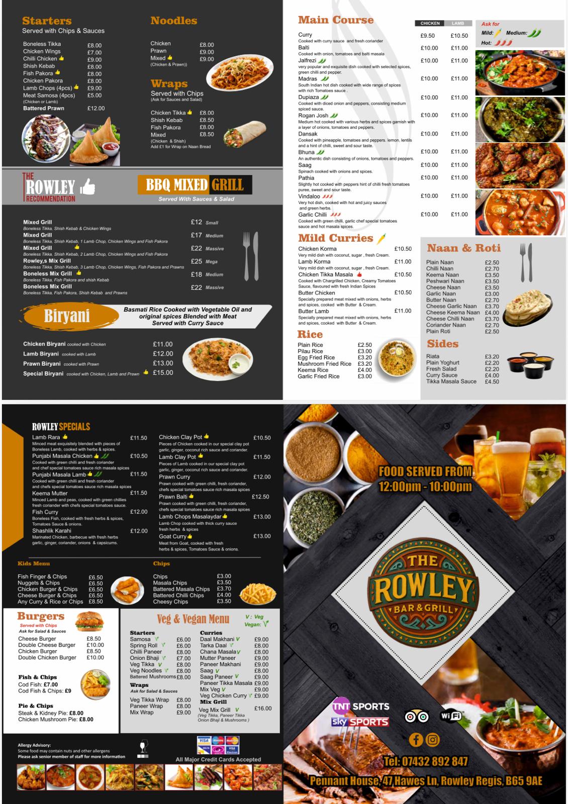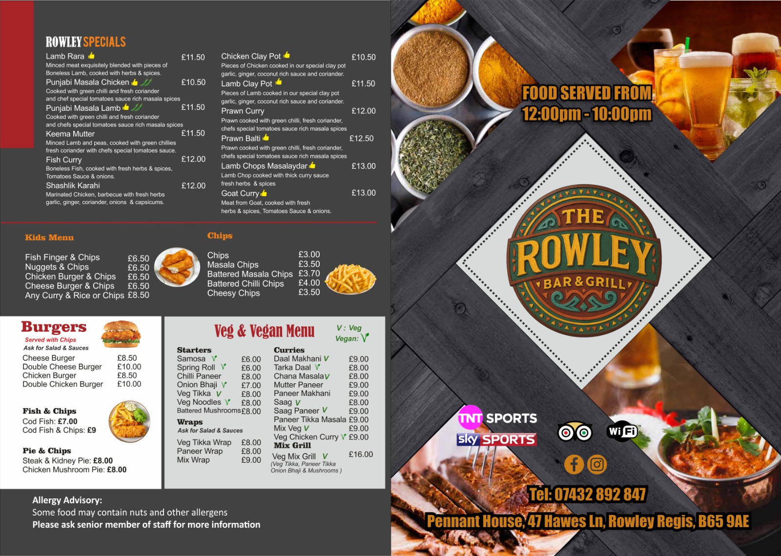 The Rowley Bar & Grill is a company that specialises in menus and can greatly benefit customers. With a focus on creating delicious and varied meal options, The Rowley Bar & Grill can provide customers with an enjoyable dining experience. By using high-quality ingredients and constantly updating the menu with new dishes, The Rowley Bar & Grill ensures that customers always have something new and exciting to try. Additionally, having a well-crafted menu can help customers make informed decisions when it comes to choosing what to eat. The company's expertly made menus can also help customers track their calories and stay within their dietary requirements, and can cater to customers with specific dietary needs vegan options. Finally, The Rowley Bar & Grill can also benefit customers with prompt and excellent service. The company's staff is well-trained and knowledgeable, ensuring that customers receive proper guidance while selecting a dish or navigating any dietary concerns they may have. With delicious food, informed guidance, and excellent service, The Rowley Bar & Grill can ensure a pleasant dining experience for its customers.